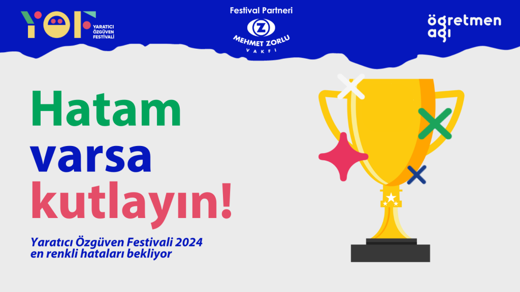 Yaratıcı mucitlerin hata dolu yolculuklarından ve her gün karşılaştıkları sorunlara yaratıcı çözümler getiren, özgüvenle yeni yollar deneyen öğretmenlerin cesaretinden aldığımız ilhamla, herkesi Yaratıcı Özgüven Festivali’nin “Hata Ödülleri” sahnesine davet ediyoruz!