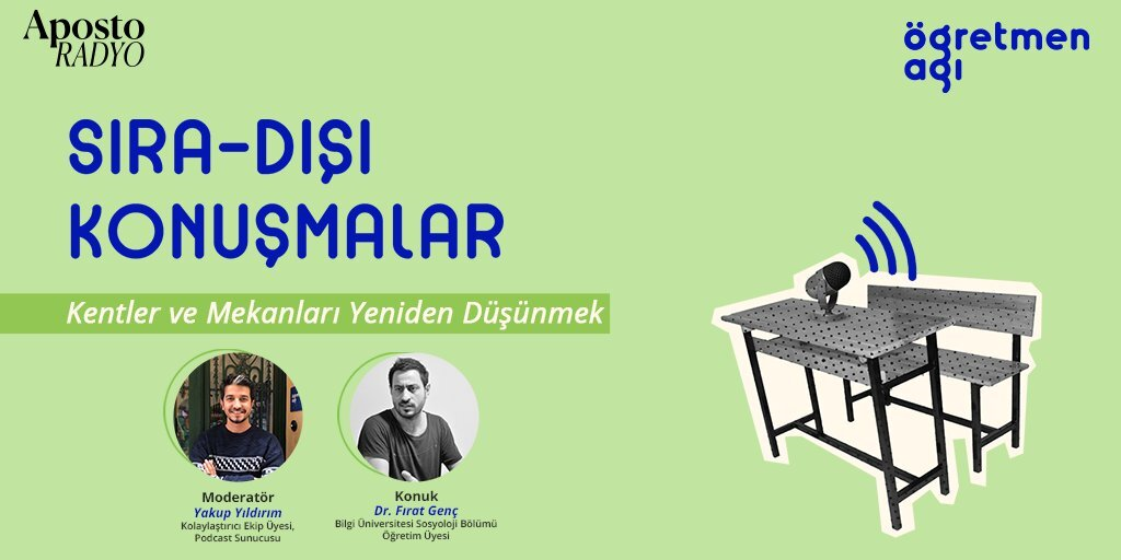 Bölümde, ortaya çıkışı itibariyle ortak ve bir arada yaşam için büyük öneme sahip olan kentler ve bu kentlerde yer alan mekanların ortak bir iyiyi ne kadar yansıttığı; ortak bir yaşam hayal ettiğimiz mekanlarda ne kadar kapsayıcı olunabildiği gibi sorularla yola çıktık. Sohbetin devamı ve detayları için sizleri Aposto Radyo’da yer alan Sıra-Dışı Konuşmalar | Kentler ve Mekanları Yeniden Düşünmek podcast bölümünü dinlemeye davet ediyorum.