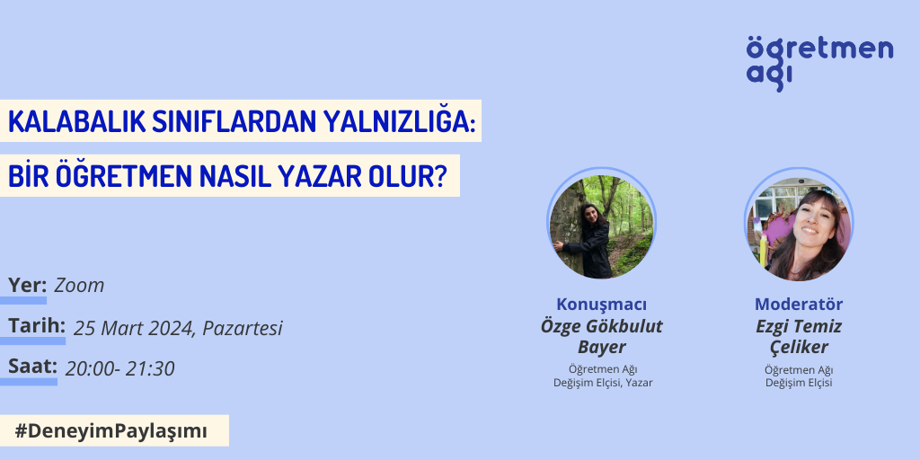 Ocak 13, 2024Saat: 20:00-21:30 25 Mart Pazartesi günü 20:00-21:30 saatleri arasında Zoom üzerinden çevrimiçi olarak gerçekleşecek “Kalabalık Sınıflardan Yalnızlığa: Bir Öğretmen Nasıl Yazar olur?” etkinliğine davetlisiniz!“Herkesin keçileri kaçırdığı bir mevsim vardır. İnsan bunu bazen dağların tepelerine çıkarak, bazen arayarak, bazen de rüyalara dalarak yaşamaya çalışır. O mevsime gelince sanki yüzyıllar boyunca beyninin bir noktasında bekleyen perde…