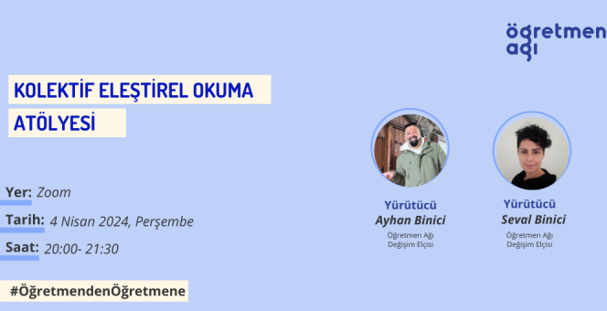 Nisan 4, 2024Saat: 20:00-21:30 4 Nisan Perşembe 20.00-21.30 saatleri arasında Zoom üzerinden çevrimiçi olarak gerçekleşecek “Kolektif Eleştirel Okuma” etkinliğine davetlisiniz!Günlük hayatta sayısız içerikle karşılaşıyor ve çoğu zaman bu içerikler üzerine düşünmeden hayatın akışına devam ediyoruz. Okuduğumuz içeriklerle kurduğumuz ilişki de kelimeleri gözden geçirerek içeriğin yüzeyinde gezindiğimiz bir eylem oluyor. Oysa okumak sadece kelimeleri gözden geçirmek değil…