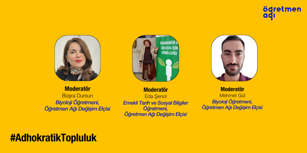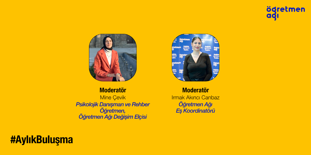 Mayıs 13, 2025Saat: 20:00-21:30 13 Mayıs 2025, Salı günü 20:00-21:30 saatleri arasında Sürdürülebilirlik İçin Öğret Topluluğu’nun ilk buluşmasına davetlisiniz! Öğretmen Ağı Değişim Elçileri Büşra Dursun, Eda Şenol ve Mehmet Gül, bizleri eğitimde sürdürülebilirlik bilincini artırmaya yönelik düşünmeye davet ediyor. Sürdürülebilirlik kavramı beş alt boyutta hayatımızın içinde yer buluyor: Çevresel, sosyal, ekonomik, barış ve adalet. Bu kavram, yalnızca…