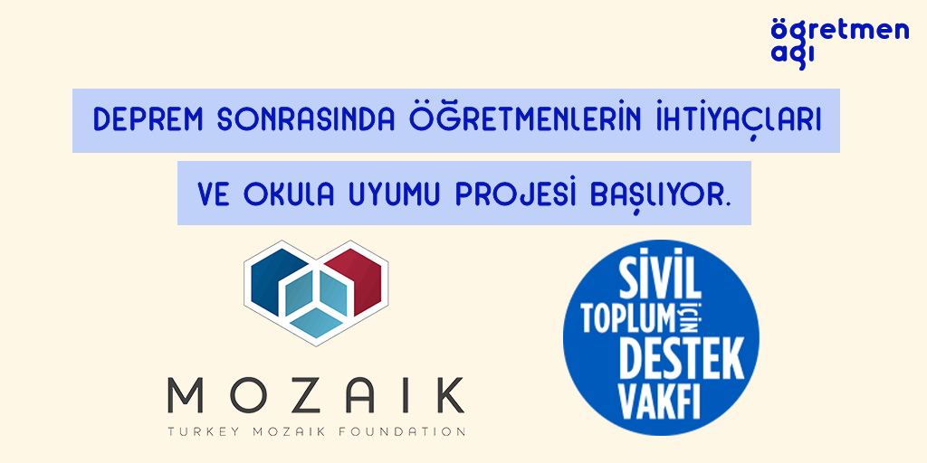 Öğretmenler, etkinliklerle, gezici atölyelerle, gönüllü inisiyatiflerle pek çok yaşama dokundu, dokunmaya da devam ediyor. Öğretmen Ağı olarak biz de Sivil Toplum için Destek Vakfı ve Turkey Mozaik Foundation’ın desteğiyle yürüttüğümüz “Deprem Sonrasında Öğretmenlerin İhtiyaçları ve Okula Uyumu” projesinde; deprem bölgesine sürdürülebilir desteğin önemine inanarak Hatay, Adıyaman ve Maraş’ta bulunan 10 merkezde öğretmenlerle birlikte çalışacak; şimdiye kadar ürettiğimiz/üreteceğimiz çalışmaları yaygınlaştıracağız. Yaz dönemi itibariyle Öğretmen Ağı’nın deprem bölgesindeki faaliyetlerini; Adıyaman, Hatay ve Kahramanmaraş’taki paydaşlarımızın işbirliğiyle, sürdürülebilir gönüllü desteği ihtiyacı olan merkezlerde gerçekleştireceğiz.