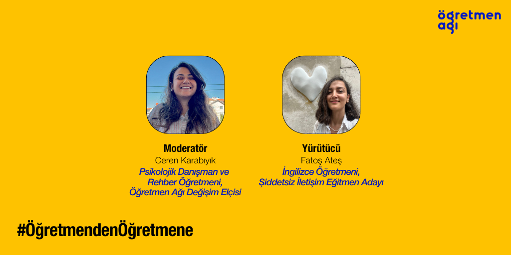 Mayıs 27, 2025Saat: 20:00-21:30 Şiddetsiz İletişim Derneği İşbirliğiyle: 27 Mayıs Salı günü 20:00–21:30 saatleri arasında Zoom’da gerçekleşecek Şiddetsiz İletişimle Tanışma Atölyesine davetlisiniz!Değişim Elçileri olarak yalnızca sınıflarımızda değil, Öğretmen Ağı Topluluğu içinde de birlikte üretiyor, öğreniyor ve dönüşüyoruz. Bu sürecin sürdürülebilir, besleyici ve kapsayıcı olması ise kurduğumuz ilişkilerin niteliğiyle doğrudan bağlantılı. Duygularımızı, ihtiyaçlarımızı ve…
