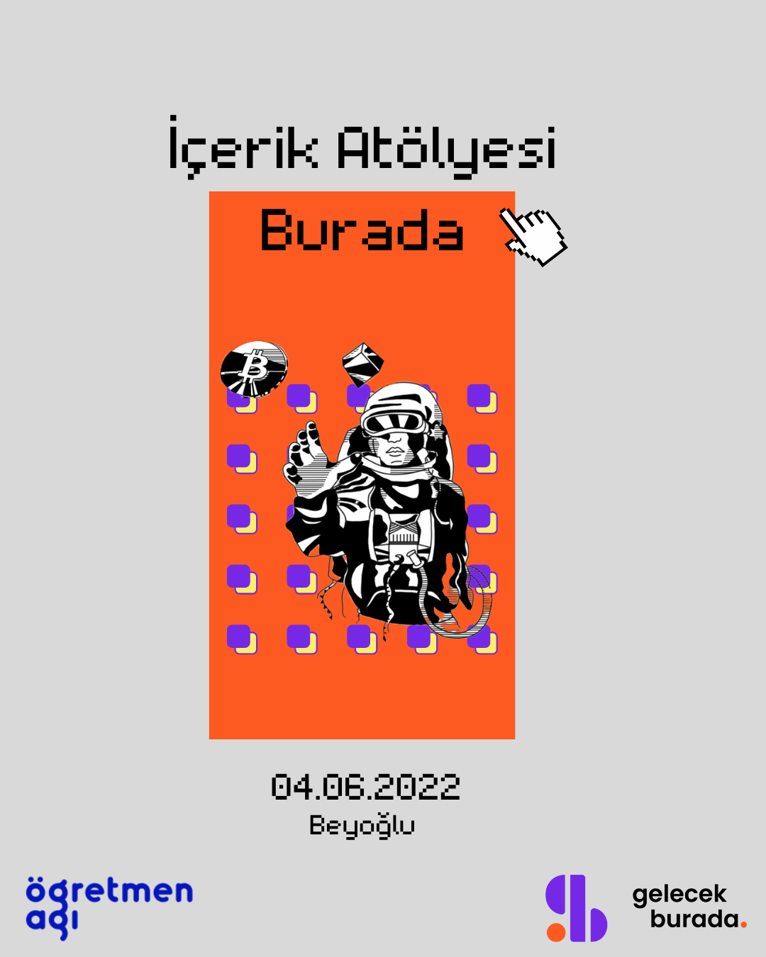 Haziran 4, 2022Saat: 14:00-17:00 Yaratıcı Özgüven Festivali kapsamında yapılıyor Festival ile ilgili ayrıntılı bilgi için: http://www.yaraticiozguvenfestivali.org/Gelecek Burada İşbirliğiyle: “Nitelikli içerik tüketimi ve üretimi nedir? Neden içerik üretiyoruz? Nasıl Üretiyoruz?” soruları üzerine birlikte düşünmeye davetlisiniz!4 yıldır öğrenci gençler ile çalışarak teknoloji okuryazarlığını artırmaya odaklanan bilgi, ilham ve deneyim paylaşım platformu Gelecek…