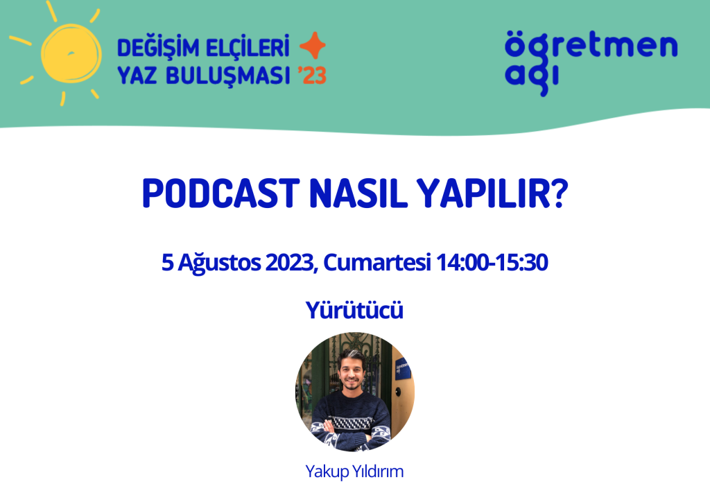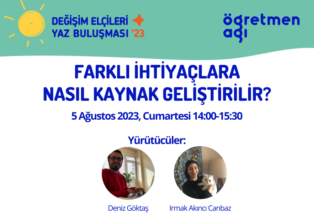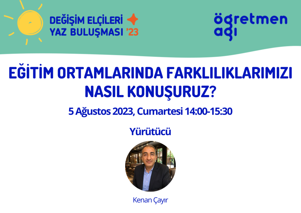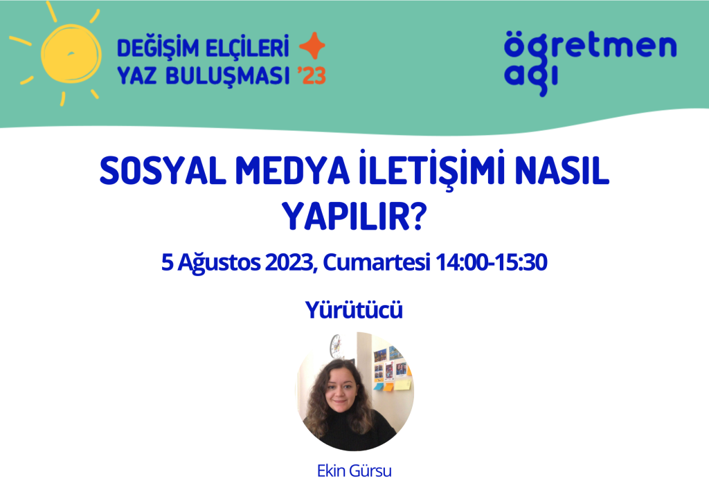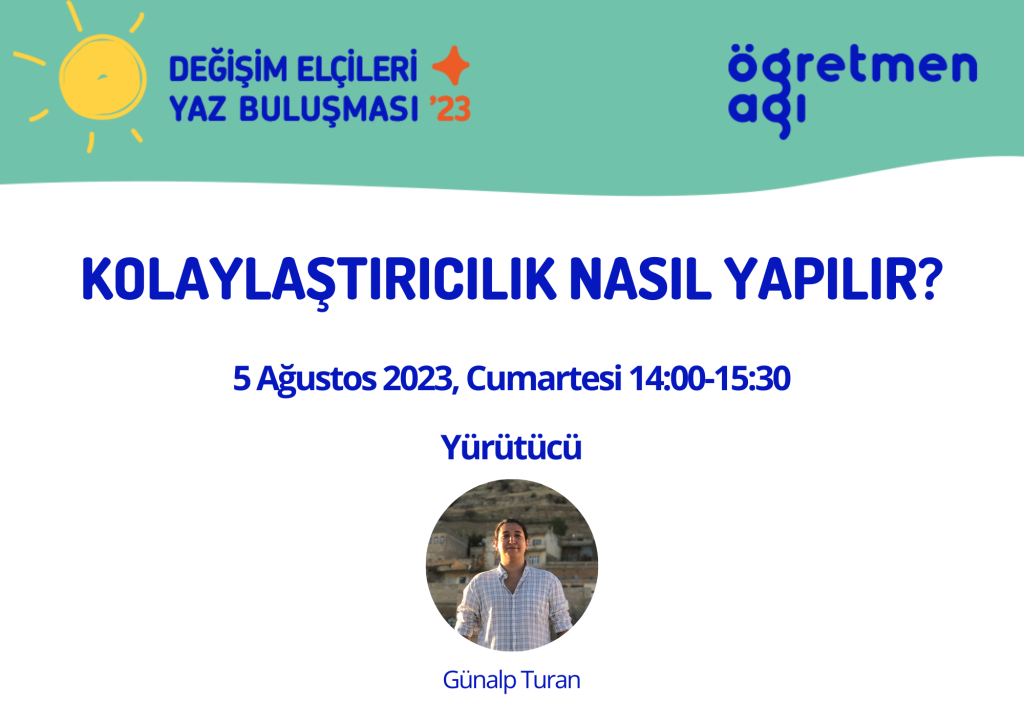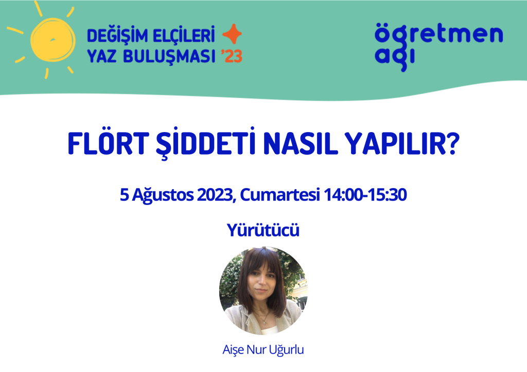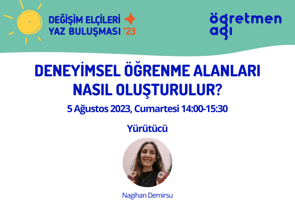 2023 Değişim Elçileri Yaz Buluşması kapsamında Öğretmen Ağı’nda ve okuldaki çalışmalarımızı hem sürdürmekte hem de yaygınlaştırmakta destekleyebilecek bazı teknik araçları ve yöntemleri daha yakından keşfetmek için herkesi “Metodolojik Güçlenme Atölyeleri”ne bekliyoruz. 5 Ağustos Cumartesi günü 15:00-16:30 saatleri arasında gerçekleşecek 8 eş zamanlı oturumdan sadece birine kayıt olmanızı rica ediyoruz.