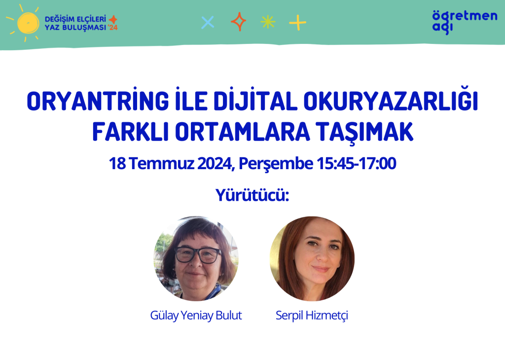 Bu atölye, dijital oyunları ve oryantiringi kullanarak, “dijital okuryazarlık” kavramını sınıf ortamlarına ve farklı eğitim ortamlarına taşımak için tasarlandı. Atölyede; dijital okuryazarlık kavramına dair bir deneyim paylaşımı yapacak, bu kavramların neler olduğuna, ne anlama geldiğine dair bir kavramsal çerçeve çizeceğiz. Sonrasında ise masalları, dijital oyunları ve oryantiringi kullanarak dijital okuryazarlık kavramını yeni perspektiflerden ele alacağız. Etkinlik sonunda ise, Teyit ve Öğretmen Ağı işbirliği ile, yine öğretmenler tarafından hazırlanan, Eğitimde Eleştirel Dijital Okuryazarlık: Öğretmenden Öğretmene El Kitabı’nı tanıtacağız.